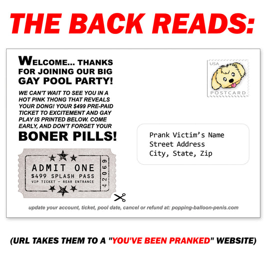 Big Gay Pool Party Prank Postcard