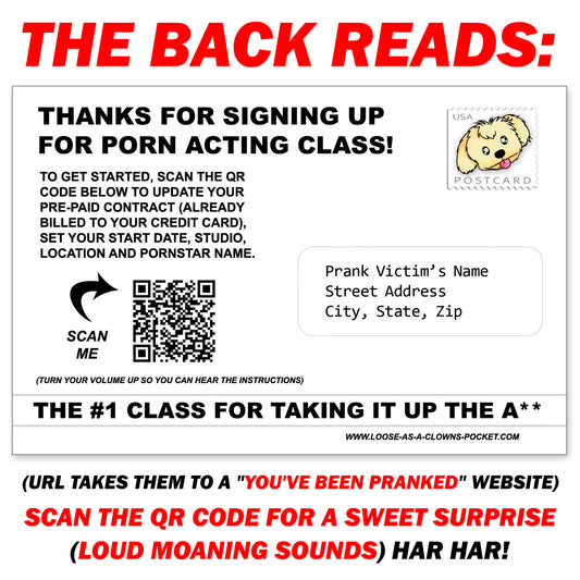 Porn Acting Class Mail Prank Postcard