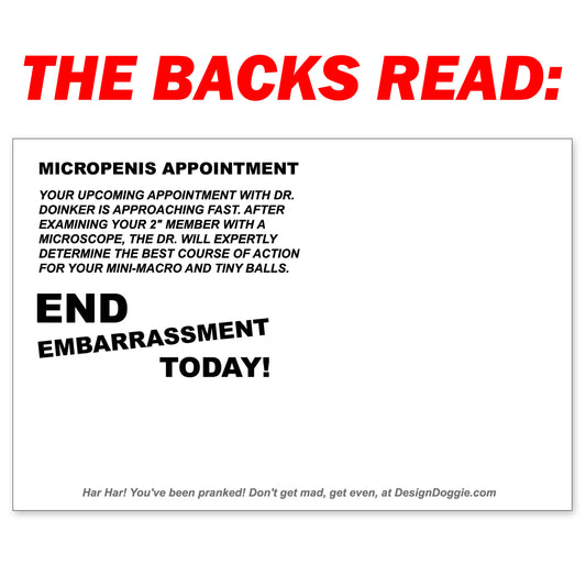 12 Pack Prank Micropenis Postcards