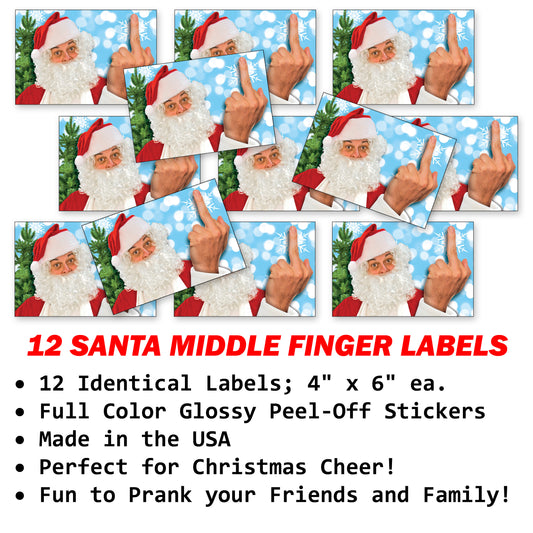 12 Santa Claus Middle Finger Christmas Prank Stickers for DIY Christmas Cheer!